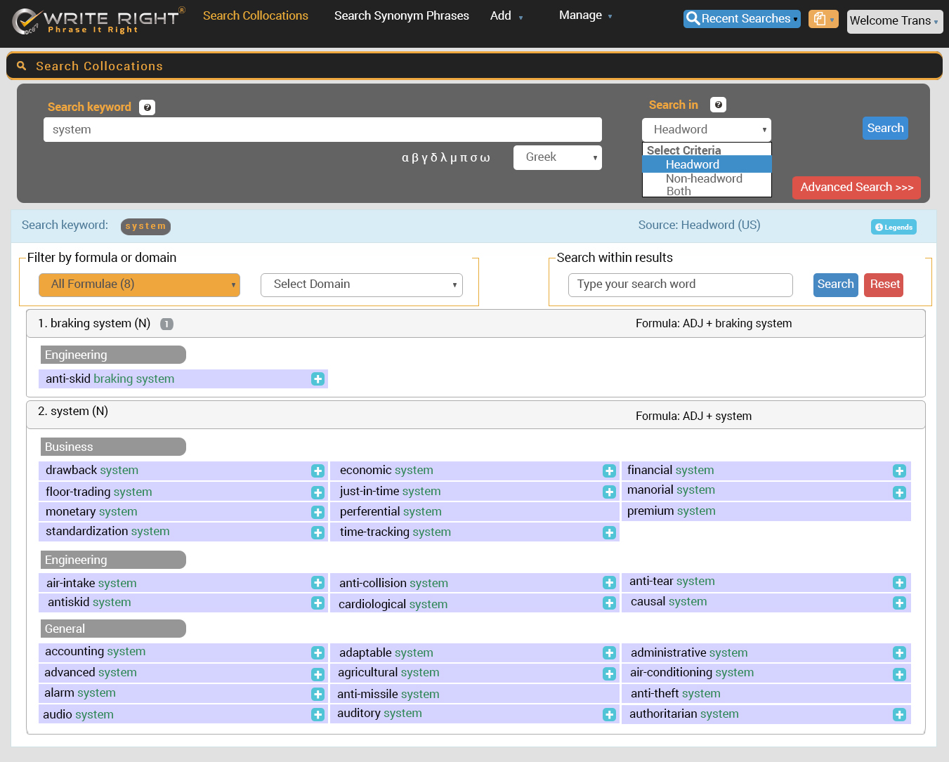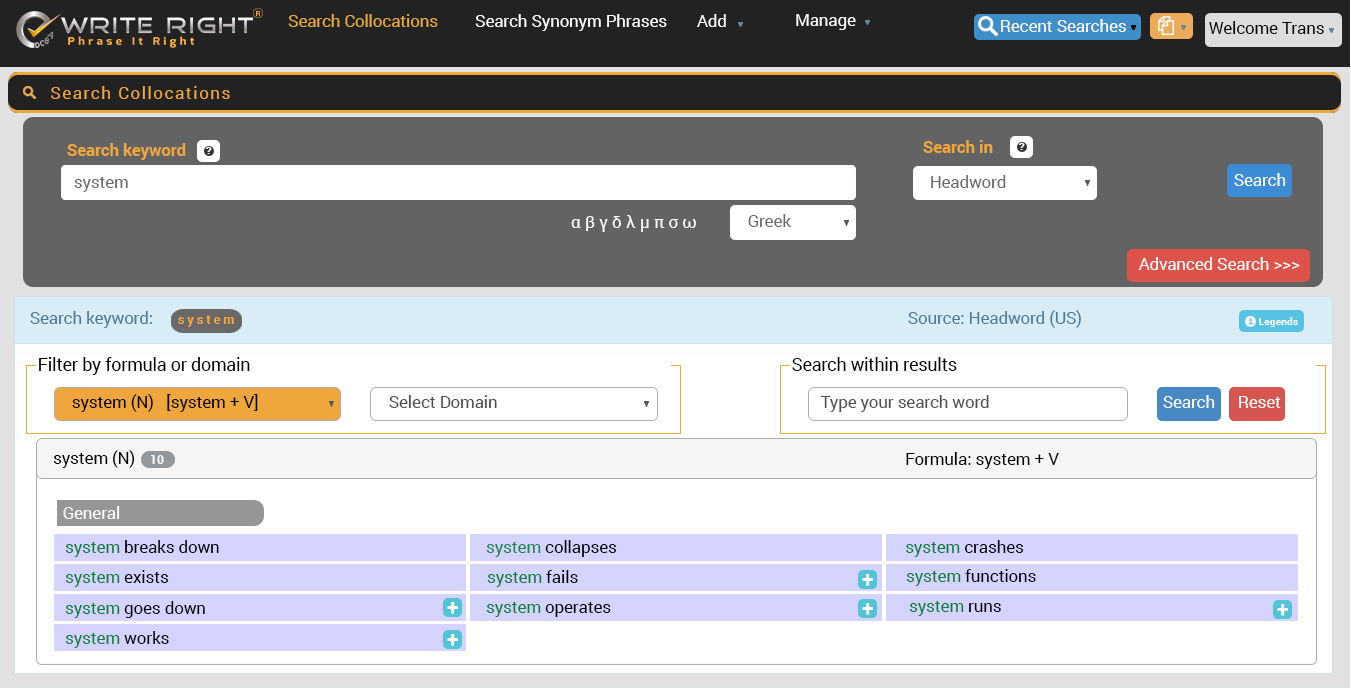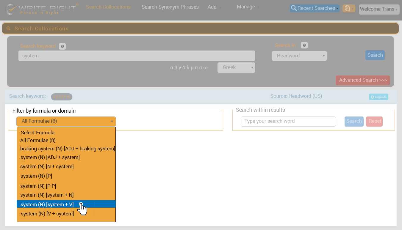We can filter based on formula to limit the number of results shown. For this, you need to be aware of the PoS (parts of speech) of the desired results.