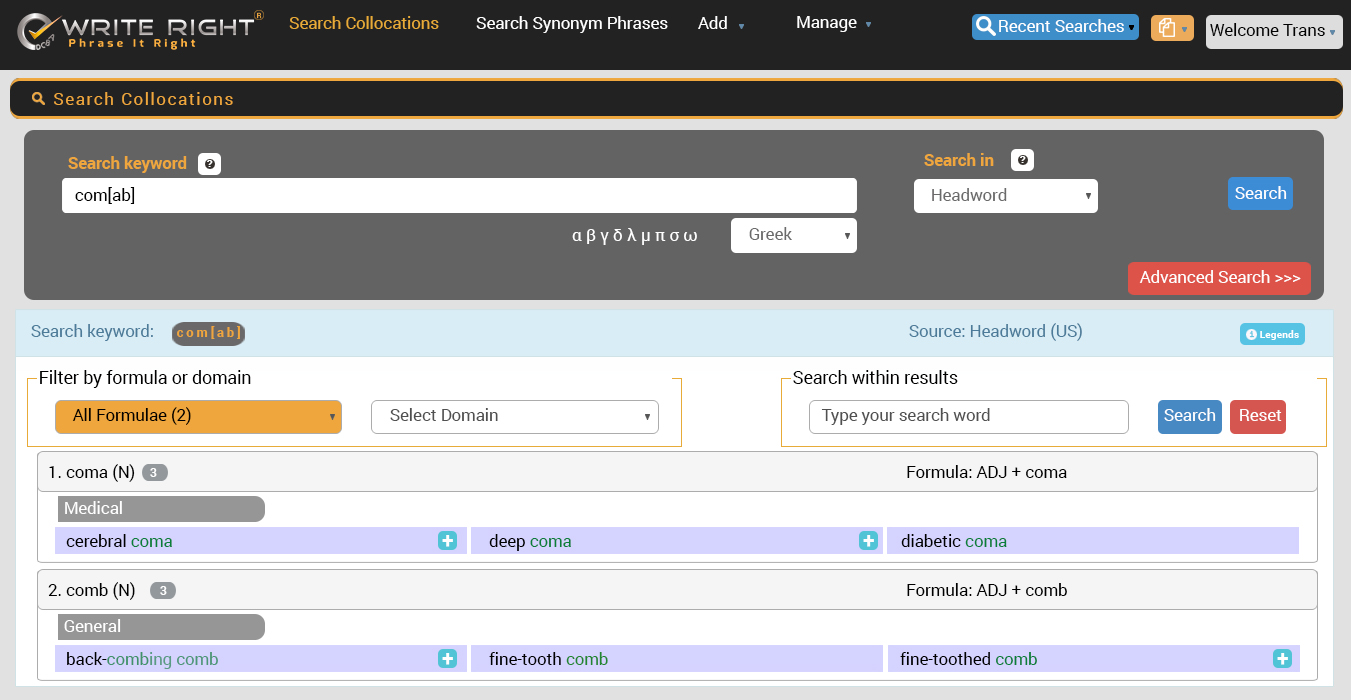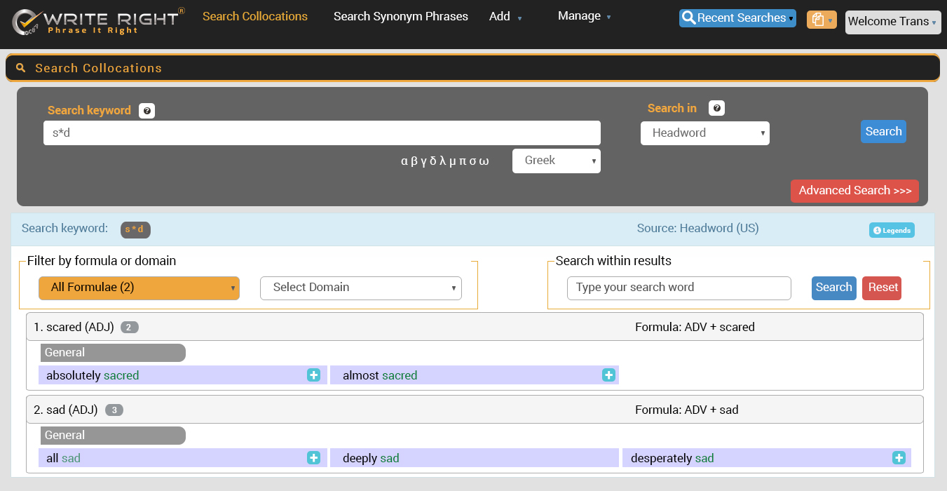 Click on the respective non-English character (from the selected foreign language in the drop-down) to include it in the keyword.
