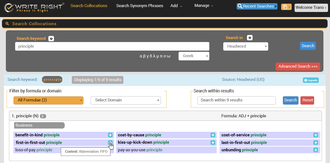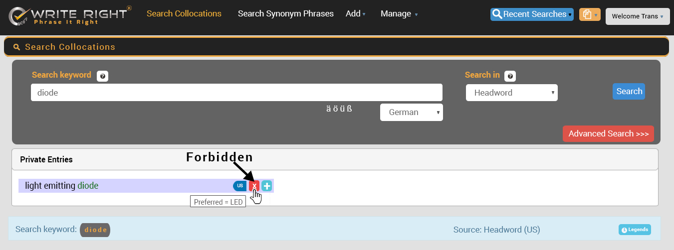 If a technical collocation has a standard abbreviation, the abbreviation can be listed in the Context and it can be classified as forbidden or available to all.