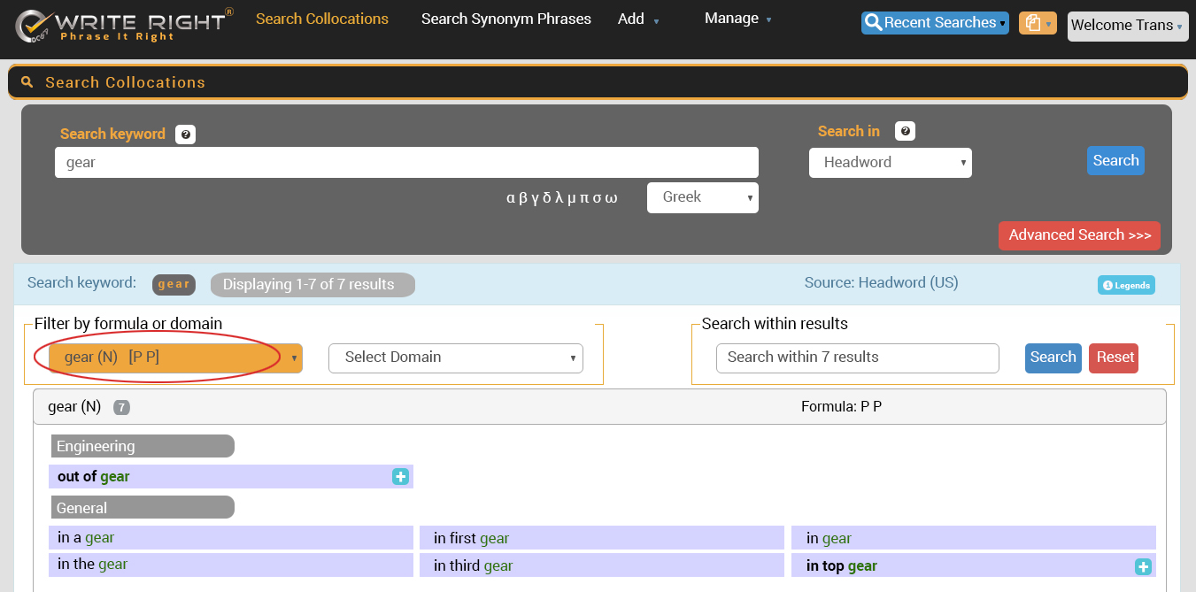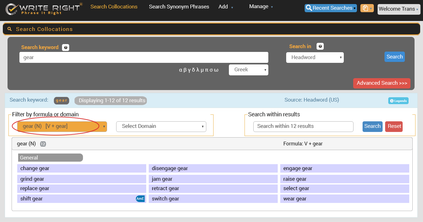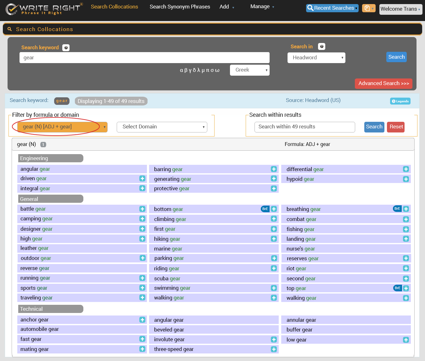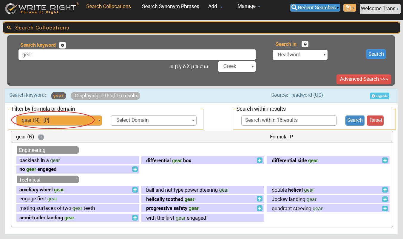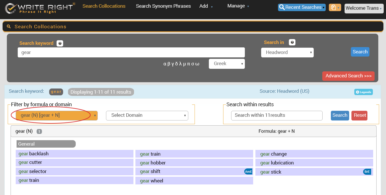 Identify the headwords (gear, lubrication, lubricate). In general, a writer should have an idea of the paragraph to be written and know the main noun (we call it a headword), but may not have a ready list of appropriate adjectives and modifying nouns in mind. This is where the toolkit steps in.