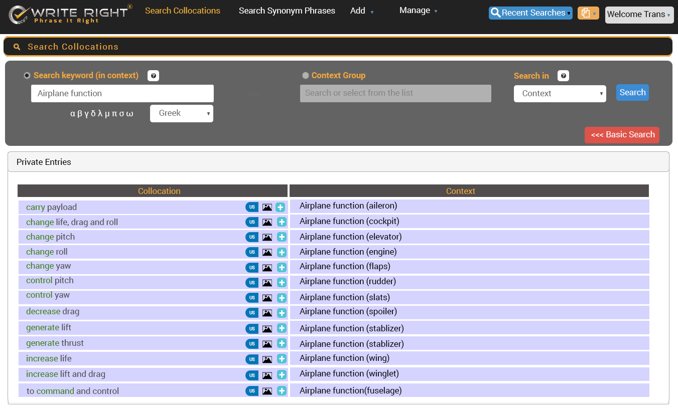 As the requirement is to add the function of each part, the corresponding verb has been chosen as the headword. The context has been assigned as “Airplane function (part)”. The subdomain has been assigned as “Aeronautics”. Upload the above image for each private entry.