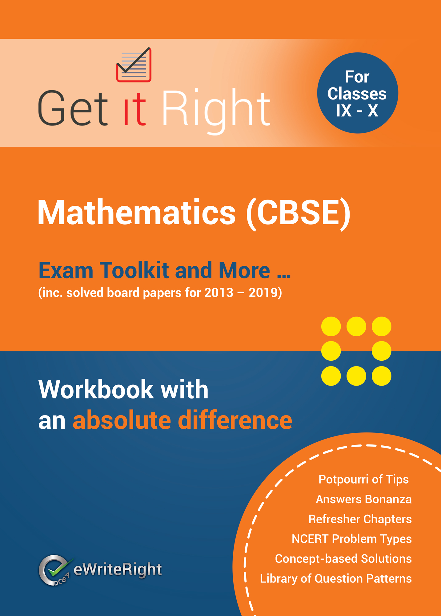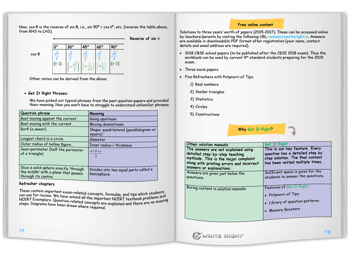 | Description: | Get It Right is a workbook which is helpful to students who are preparing for the 10th Board Exams (Mathematics) in CBSE. We have adopted a unique teaching method that will positively help students to get the right answers and also reason out why the answers are correct. |
